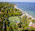 The apartments are located in 2-storey villas with pastel colours and tilled roofs. Each apartment has a fully equipped kitchen, a patio or balcony, satellite TV, and private bathrooms. It is just 1000 ft from the beach and offers apartments with views of the grounds or sea views. Just 300 metres from a public beach and 3 km from Pula.The Hotel also features an outdoor sea-water pool, surrounded by parkland. You can rent bicycles, scooters, and cars on site.