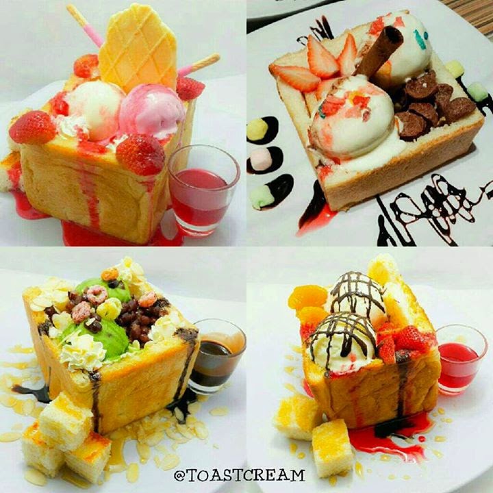 Bentuk ice creamnya unik, wadahnya berupa kotak roti. Ukurannya juga jumbo dapat dinikmati rame-rame.