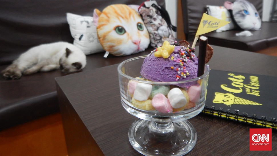 Menu disana hanya ice cream karena rasanya manis dan aromanya tidak menganggu penciuman kucing.
