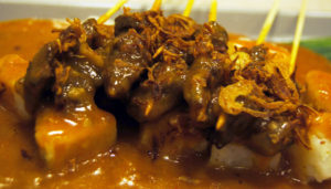 Meski berbahan dasar daging sapi, olahan sate ini juga bisa dibuat dengan bahan dasar ayam.